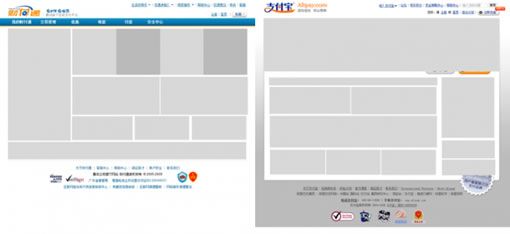 支付寶和財付通的目標訴求及功能需求是基本一致的,我們來看看他們的首頁設計,分別有什么不同?