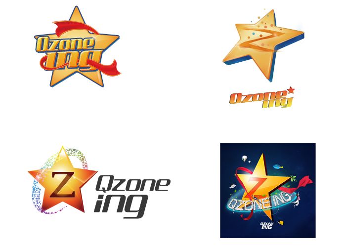 從設計師完成的幾款logo初稿中驚喜的發(fā)現,構思和元素選取上有異曲同工之意。空間logo中的五角星,星球和代表”Qzone”的Z被從新表現和詮釋不同的氣質。加之彩帶,光環(huán)和歡慶的元素的結合表現著慶典主題logo的歡慶氛圍。