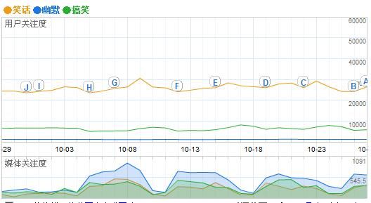 對(duì)于這個(gè)問(wèn)題,誰(shuí)都不得不考慮一下,因?yàn)樗匾?。在title中設(shè)置一些關(guān)鍵字,如笑話、幽默、搞笑圖片等。對(duì)于幽默笑話類的搜索,baidu的比重最大,GG的相對(duì)較弱。利用百度指數(shù)、GG關(guān)鍵字工具等,可以比較一下各個(gè)關(guān)鍵詞在搜索中的比重,比如下圖是百度指數(shù)對(duì)笑話、幽默、搞笑這三個(gè)詞的比較: