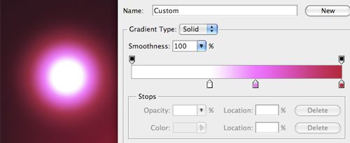 下面要制作一個(gè)光效層,并且將會(huì)用它來制作所有的光波。新建圖層設(shè)置混合模式為濾色。然后用橢圓選區(qū)工具選擇一個(gè)圓形選區(qū),然后設(shè)置20px將選區(qū)羽化(選擇》修改》羽化)(Ctrl+Alt+D)。這樣會(huì)讓光效邊緣更像光暈。我喜歡用三種顏色來做漸變。第一個(gè)也是最里面應(yīng)該選擇白色或者接近白色的顏色。填充的時(shí)候確保從選區(qū)中心開始到選區(qū)邊緣結(jié)束。
