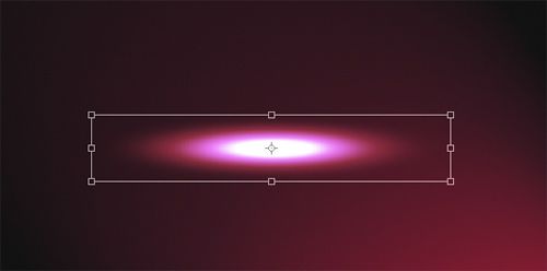 復(fù)制剛在制作的光效圖層(Ctrl+J),隱藏原始層。之后會(huì)用這層制作更多的光紋。現(xiàn)在,比例縮放(編輯》變換》縮放)(Ctrl+T)光效層使其扁平。這樣做可以控制光紋的粗細(xì)。